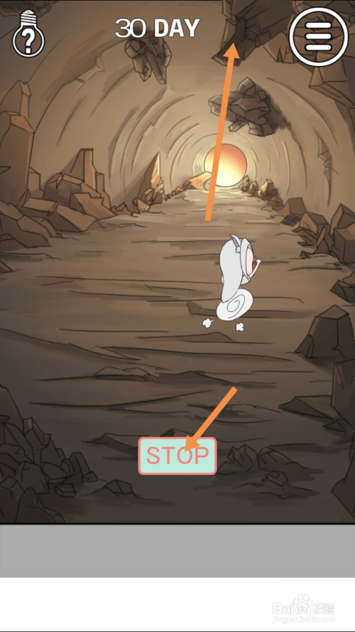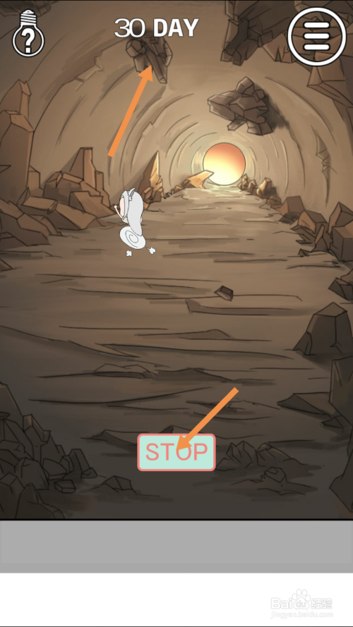 第30关在女本家儿角移动的时辰,下图中箭头标注的石头在动就点击STOP。