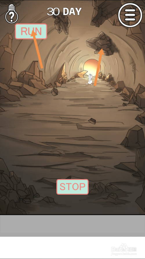 在女本家儿角移动的时辰,下图中箭头标注的石头在动就点击RUN就过关了。