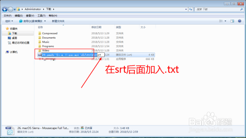 点击一下这个srt的名字,稍微等一下再次点击一下,进入重定名阶段,然后在srt后面输入.txt,然后在白色区域点击一下,然后看到图二的提醒点击是就可以了。
