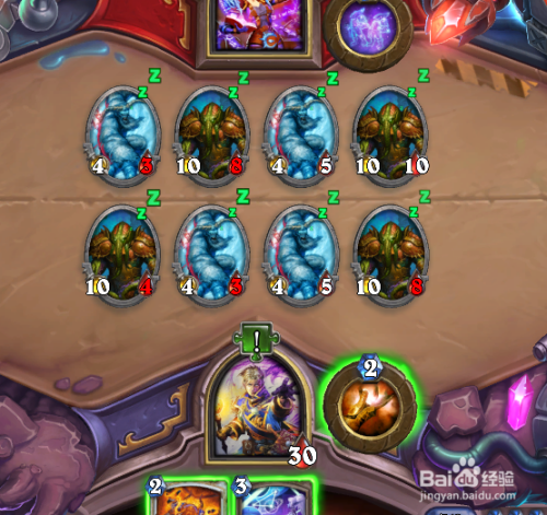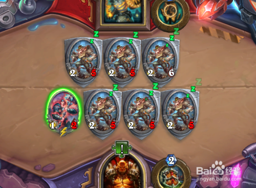 利用两个玉莲印记,场上的小精灵进犯对方2血的小精灵,利用愤慨3点危险打失落一个本身的小精灵,英雄技术变脸打失落一个对方的1血小精灵,再上一个小精灵。