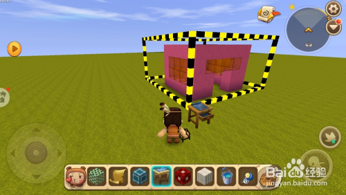 将一个开关放到蓝图工作台旁边,启动开关,就会起头复制房子了。