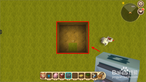 首先在地面挖3x3大小的坑,深度为1格,如下图所示。