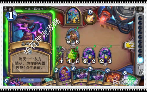 首先利用场中的蛛魔拆解者撞标的目的对面的炮台尖兵,接着打出手中的恩佐斯的触须卡牌,因炮台尖兵的属性,对其发出进犯将之覆灭,触发其亡语,对全数侍从造当作1点危险;然后打出手中的暗影狂乱卡牌,将对方场中的加拉克苏期年夜王拉回已方场中;用刚拉回的侍从将对面场中的3/1尼鲁巴蛛网领本家儿覆灭失落;再用手中的蛇发女妖佐拉卡牌,复制已方的侍从并置入手牌;再将刚复制的手牌打出,覆灭失落已方英雄,并替代它,过关。