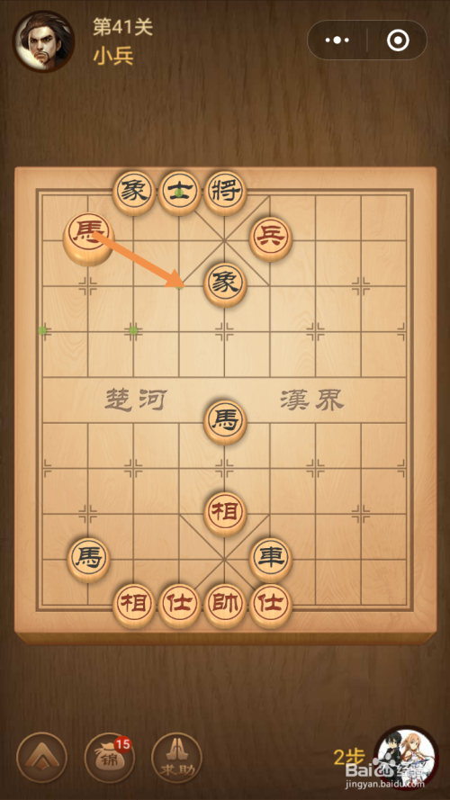 第40关第一步馬移动到下图中箭头标注的位置。