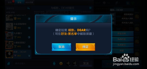 提醒的窗口,会显示确定要拉黑这个玩家,点击确定。