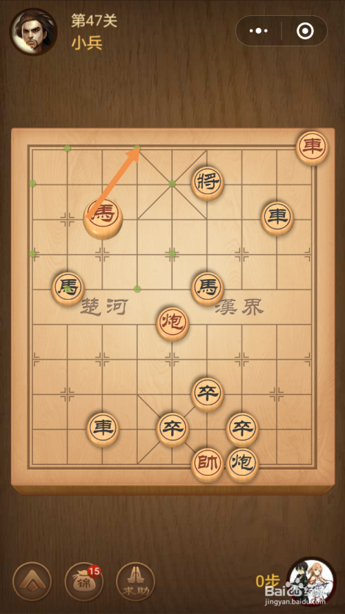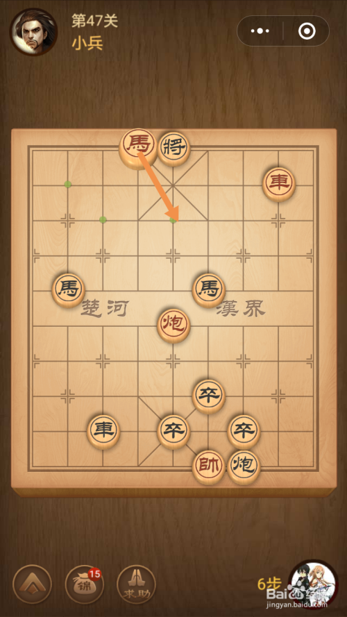 第47关第一步馬移动到下图中箭头标注的位置。