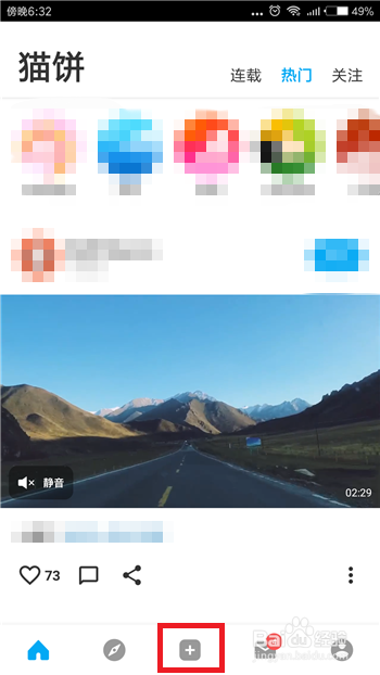 接下来我们需要利用猫饼编纂软件,打开后在首页点击底部的【+】选项。