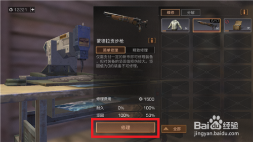 想要维修的话就可以点击下方的【维修】选项,在上方可以看到经久值以及坚忍值的转变。