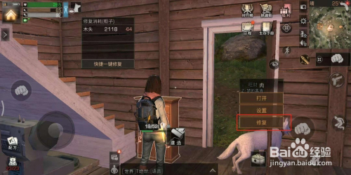点击建造,在楼梯上建造木墙和木门,上完楼梯进房间再建造多一个门,耗损拆家的枪弹,削减他们兵器的经久,