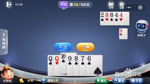 第118关先打出三张3,妙算子打出王炸。