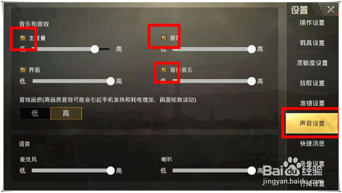 而在手机版中,同样可以查看“设置”中的“声音”设置环境,查看是否“本家儿音量”、“音效”、“布景音乐”等选项是否勾选开启,相关音量是否设置太小。