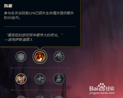 LOL英雄联盟S9季前赛男枪副系带紧密系。我小我比力喜好点出凯旋和欢欣,前者介入击杀回血,后者增添进犯速度。