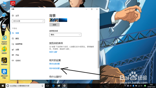 在设置对话框中的布景选项中找到同步你的设置并点击。