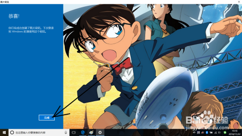 设置手势完当作后可显示恭喜你,建立图片密码当作功,然后点击完成按钮,期待下次开机就可以利用了。