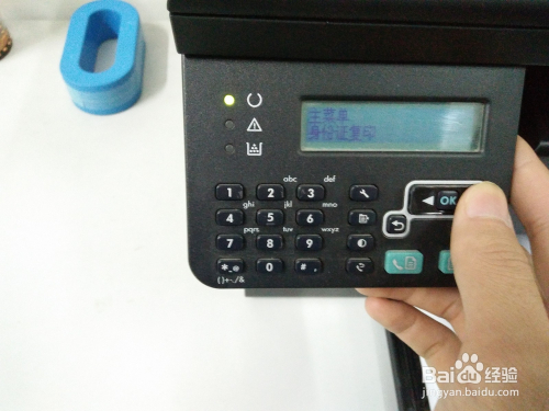 我们找到复印机面板上的设置键,按下设置键,然后找到复印设置,找到身份证复印,点击OK。