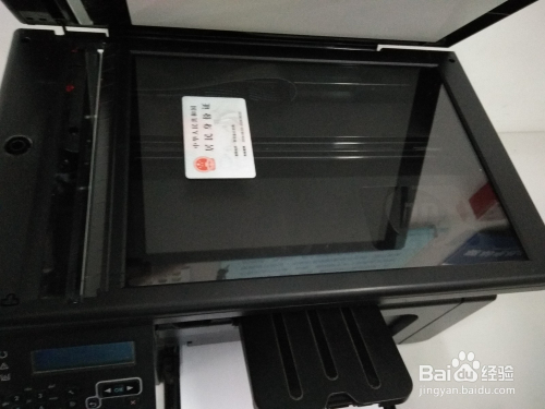 我们首先打开复印机盖板,把身份证正面朝下,放到扫描面板上,然后盖上盖板。