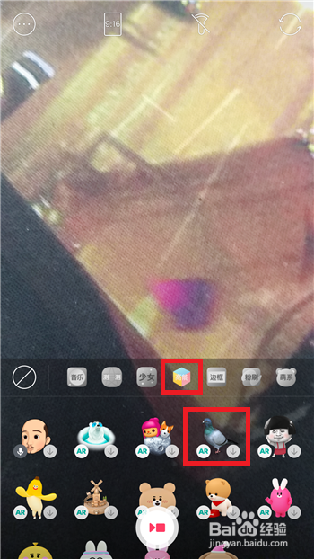 打开贴纸界面后找到【高能】,然后鄙人方就能看到鸽子的AR贴纸,点击利用。