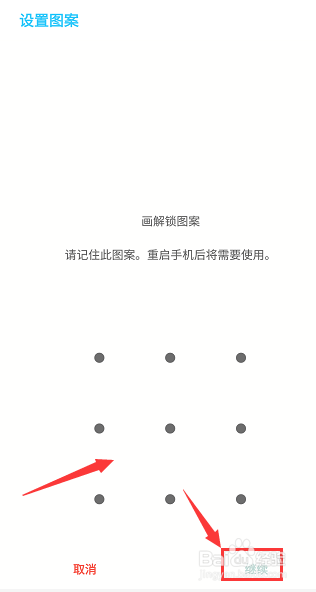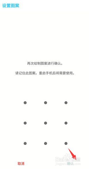 我们以图案解锁为例,点击进入,输入你的图案,需要两次确定,如下图所示