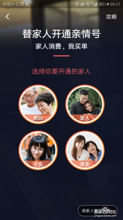 随后返回到亲情号的要选择亲戚的类型页面。