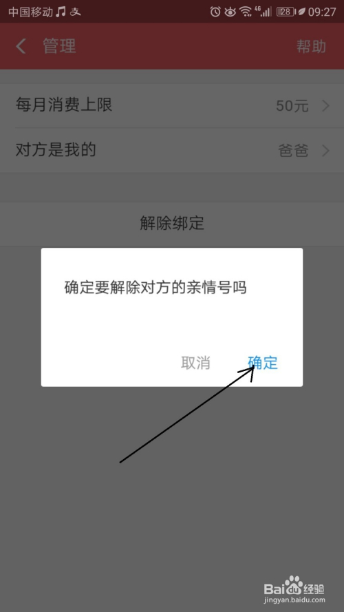 然后再次提醒确认要解除绑定的亲情号吗?这里直接点击确定按钮。