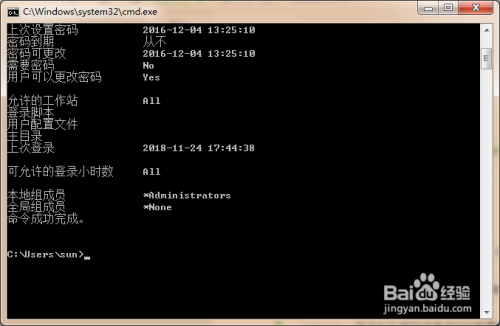- 经由过程net user可以查看当前操作系统中的用户信息;