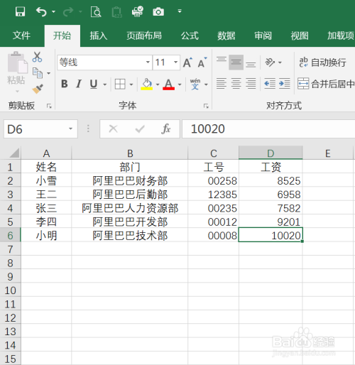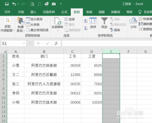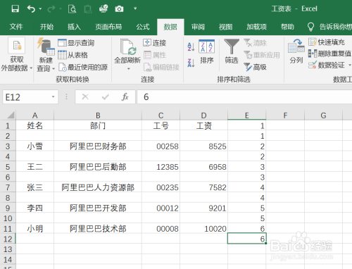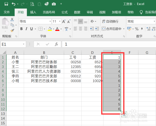 在工资列右侧输入一列数字。