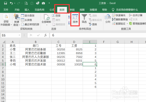 依次执行数据--排序。