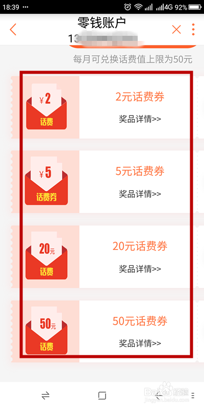 下面展示的是我已经兑换到的话费的部门兑换记实