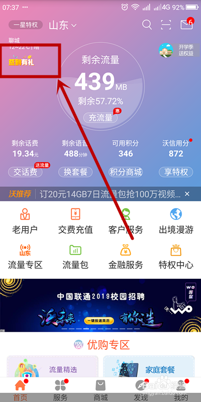 手机账户可以或许经由过程签到给我们消费者获得一些小的福利,下面要跟大师分享的是经由过程手机营业厅App用签到获得的金币兑换话费的方式。
