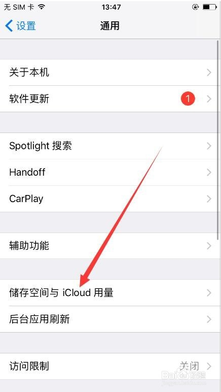 在通用中可以看到存储空间与icloud用量,进入
