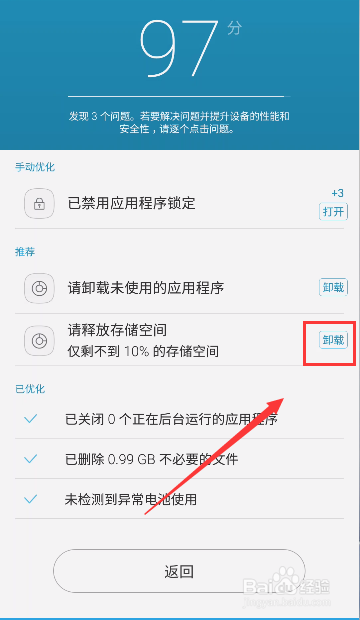 优化完当作,会清理失落一部门垃圾,接着点击无用卸载,如下图所示