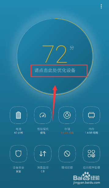 进入智能办理器,点击优化手机,如下图所示