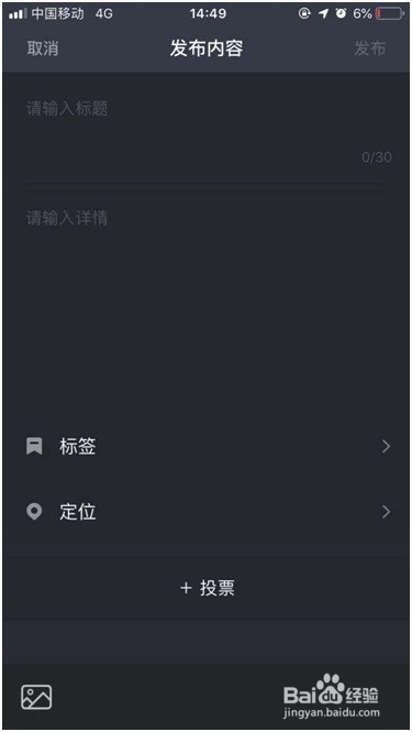 .除了输入题目和详情,在第三行可选择添加你喜好的标签,从而在本家儿页便可领会你的文章