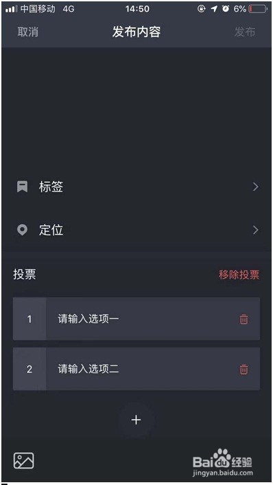 发布内容有个有趣的选项,点击投票键,可以建立你想要领会的问卷形式内容。