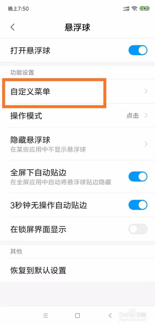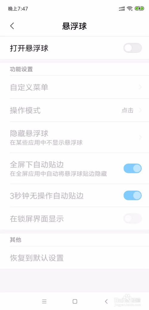 选择【悬浮球】,进入其界面,选择【打开悬浮球】,其操作界面由灰色变亮