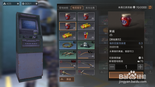 接着点击要捐募的物品,选择之后,右侧会显示该物品会获得几多的进献和营地税收,下方可以设置捐募的数目,设置好后点击进献即可。