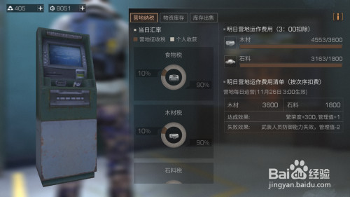 接着就会进入到营地纳税的界面,这里会显示营地的运作的一些根基信息,选择第二个选项物资库存。
