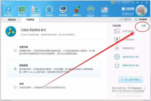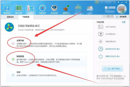 节能降温窗口中,可以选择智能降温或周全节能选项。