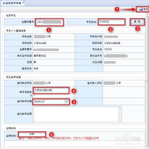 3、添加转学联系表照片作为证实材料(需要转入和转出黉舍盖学籍章)