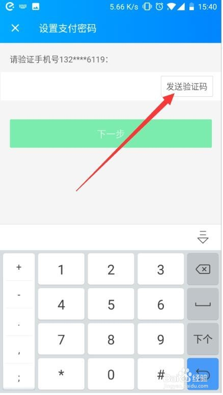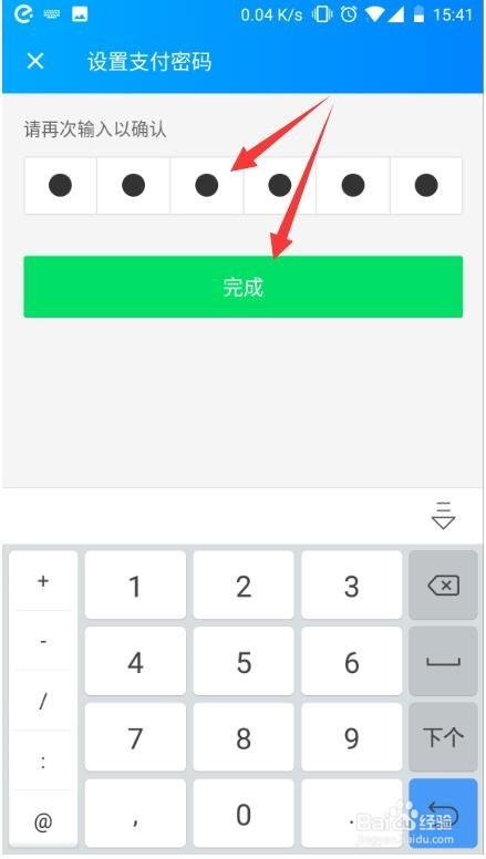 在后面输入验证码后需要输入付出密码,而且输入两次,点击完当作就完当作了设置