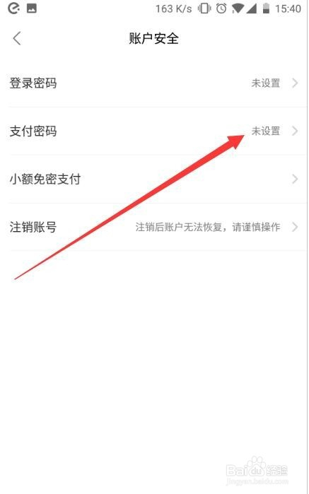 进入账户平安后我们可以看到付出密码还未设置,若是设置了就是已设置,这里点击设置