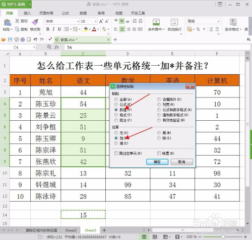 点击确定这是我们要批量加的这些数值就都增添了15.右键我们批量增添数值的第一个单位格选择插入批注。