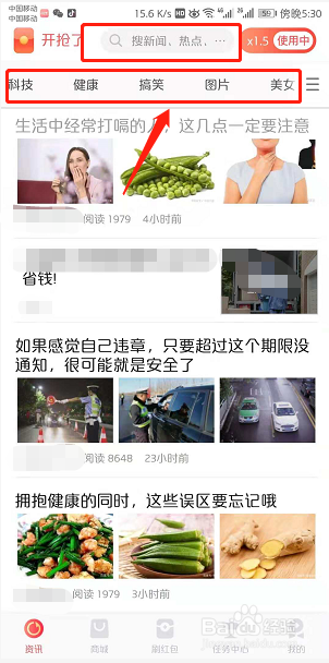 点击资讯,经由过程阅读资讯不仅可以知全国事,还能获得金豆奖励。