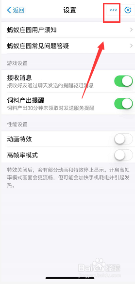 进入蚂蚁庄园首页,点击右上角的三个点,如下图所示