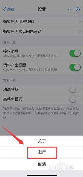 进入账户界面,点击封闭蚂蚁庄园按钮,如下图所示