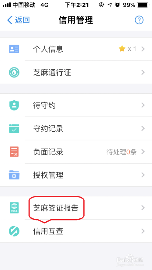 进入“芝麻信用”界面。