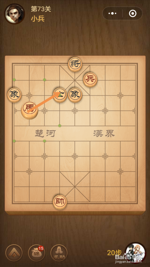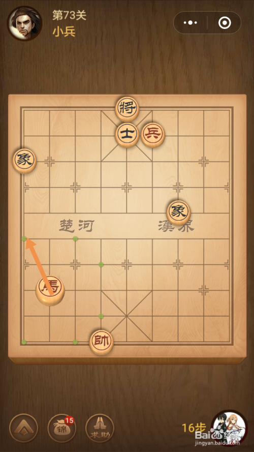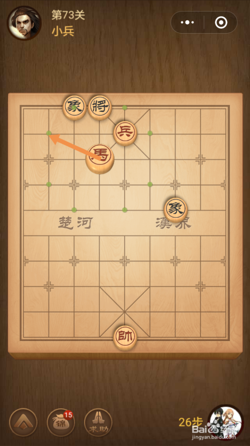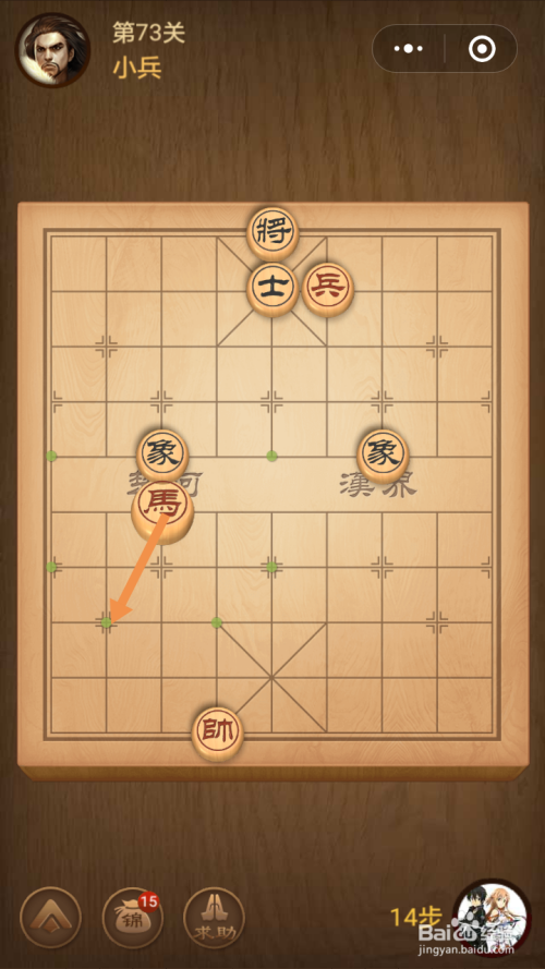 第十四步馬移动到下图中箭头标注的位置就过关了。