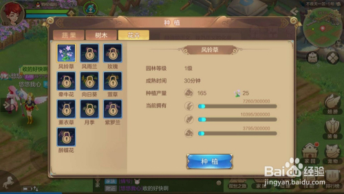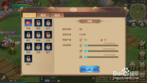 系统会弹出莳植界面,有蔬果、树木、花草3个类此外作物可供莳植,分歧类别作物收成时获得的家园资材的种类分歧。
