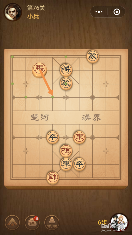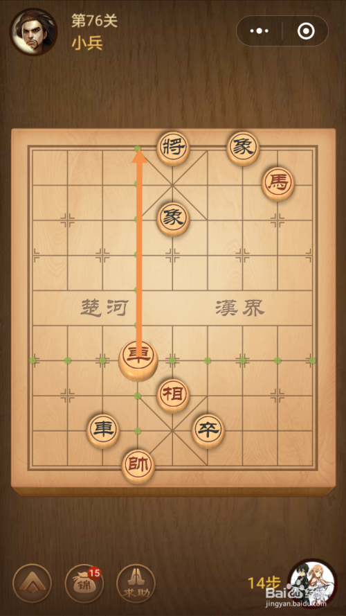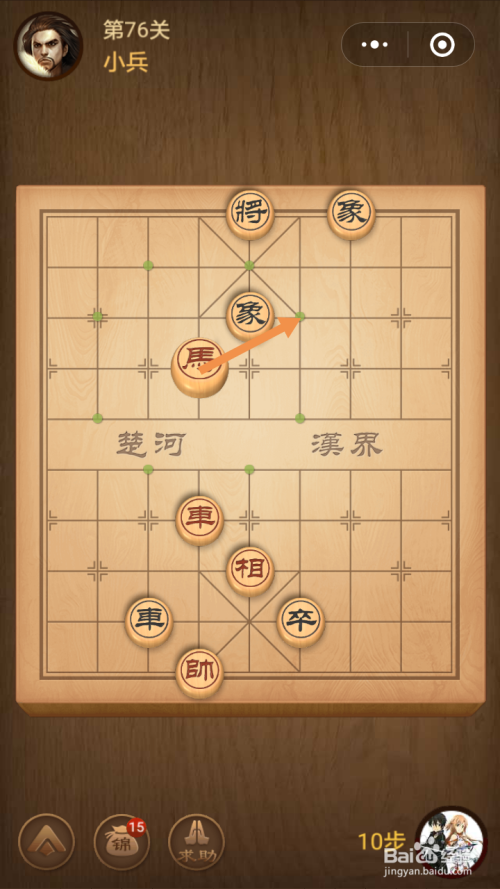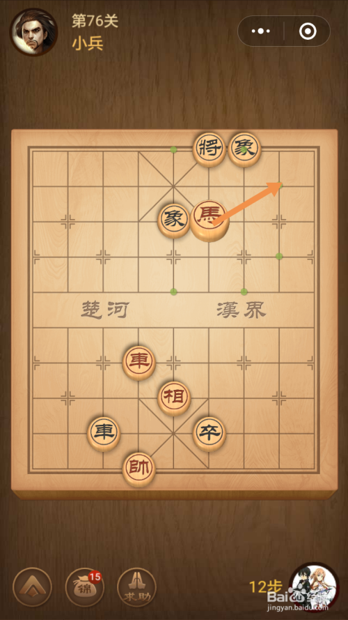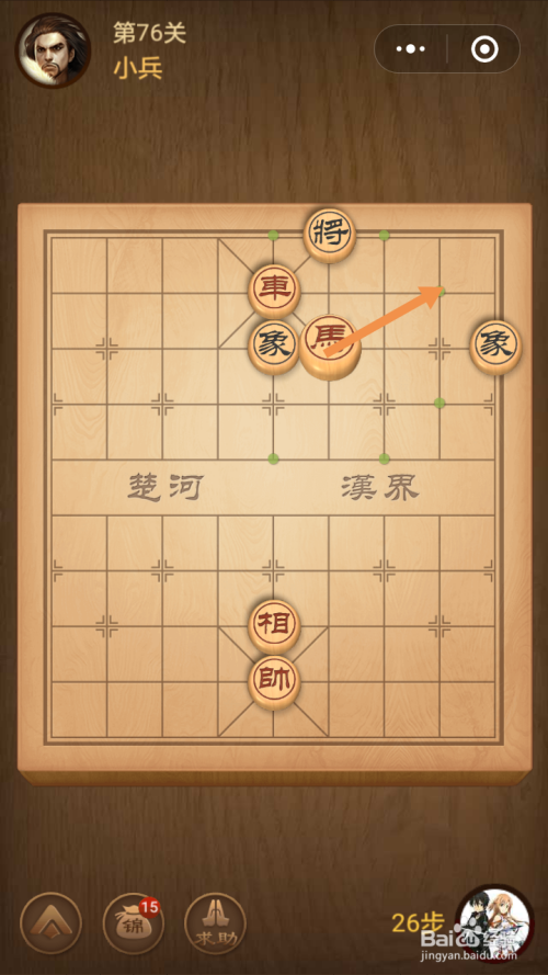 第十四步馬移动到下图中箭头标注的位置就过关了。