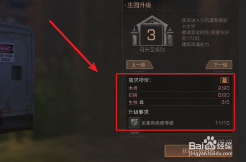 进入后,可以看到进级庄园所需要的材料。若是材料没有筹办齐备,可以点击下方的获取材料来历,查看怎么样获取材料。